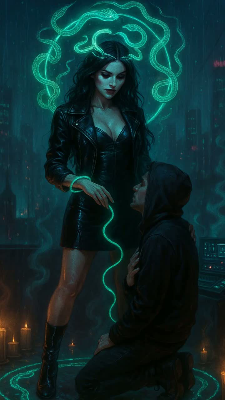 [Mood/Tags: seductive danger, nocturnal, static/noise motifs, strobe-lit]