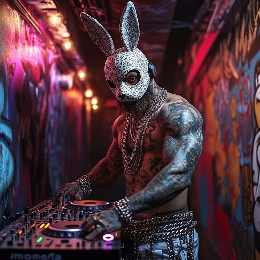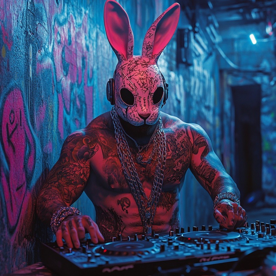 pulsating bass, hard techno underground club, gritty, rough around the edges, nonstop ponding kick, Extreamly hard techno, cave echo, DJ Gristle, DJ Domixa, Minxes, DJ Latura
