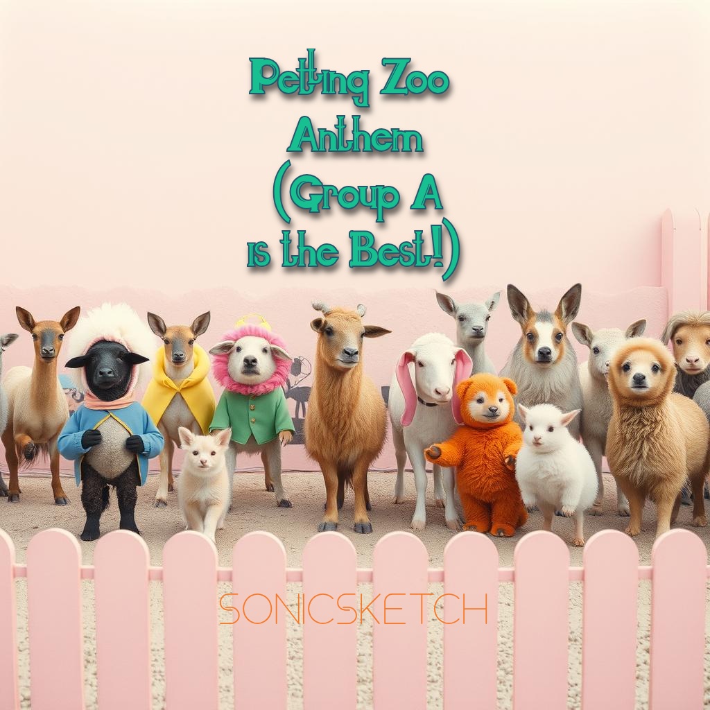 Build a bold, genre-fluid track that blends indie pop, alt-folk, and experimental electro-funk with a raw, joyful edge, Imagine acoustic instruments like banjo, ukulele, and hand percussion chopped, looped, and run through lo-fi filters, layered with modern synth bass, vocal chops, and unexpected animal sound textures used rhythmically, not childishly, Verses should feel intimate and quirky, using stripped-down beats and off-kilter melodies, while choruses explode into group vocals, clap-driven polyrhythms, and anthemic hooks, The overall feel is communal, rebellious joy — like a flash mob of weirdos at an urban petting zoo with Bluetooth speakers and vintage samplers, Catchy, clever, a little chaotic — think playground energy meets rooftop rave, with heart
