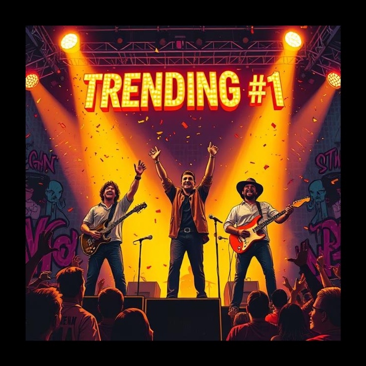 An epic, symphonic power metal anthem with strong fantasy-metal vibes, symbolizing the rise of Group A during the first week of a song contest, The lyrics tell a story of unity, power, and victory as the group hits the trending playlist, Inspired by the energy of early success and brotherhood/sisterhood forged in sound, Features dramatic orchestral elements (strings, choirs, brass), soaring metal vocals (male), fast-paced double kick drums, heroic guitar riffs, and massive cinematic builds, Power metal, symphonic metal, Triumphant, emotional, epic, inspiring mood