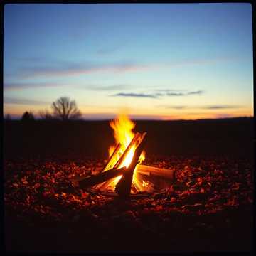A deep male voice narrates the first sentences and then starts to play a gentle, fingerpulled guitar by a campfire where a group of campers sit together, listen to stories and sing together, main rythm is defined by drumsticks and a tambourine, the Guitar plays in Minor A