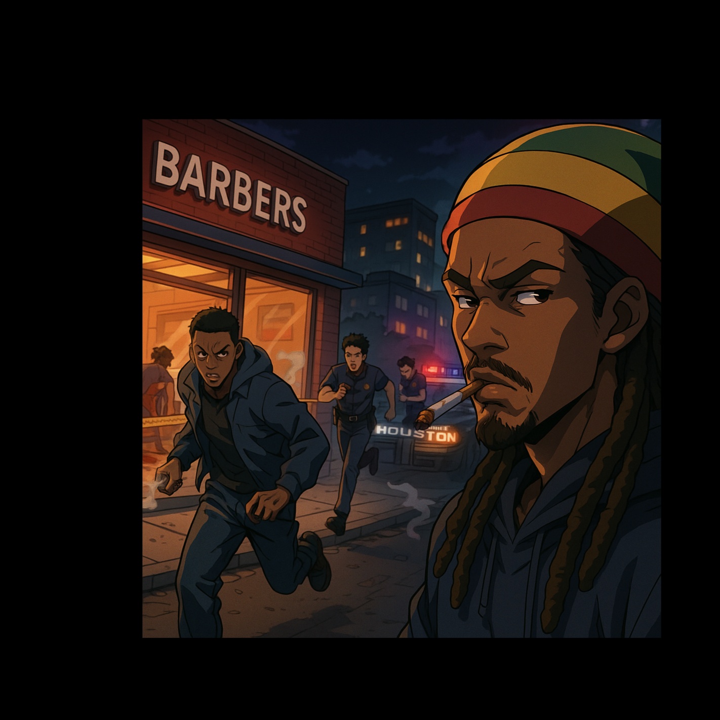 Reggae Jazz Fusion, Psychedelic Hip-Hop, Smooth Blunt Anthem; reggae jazz fusion with smooth trap drums, electric piano, and dub bass, male vocals with confident mellow flow, lyrics about smoking weed in Houston and evading police, A$AP Rocky and Anderson, Pak style, feature verse and spoken word segment, 88 bpm, smoky late-night vibe