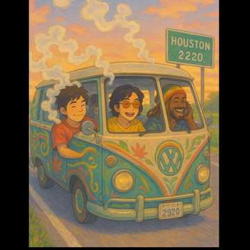 Psychedelic Funk-Hip-Hop with Voodoo Noir Swagger, west african amapiano meets Afrobeat, male vocals, korean r&b, 70s-style soul-funk groove with smooth falsetto vocals, electric guitar, and vintage keys, male rap verse with Southern tone, lyrics about finding the best weed plug in Houston, soulful and dangerous vibe, Isley Brothers and Bun B style, 82 bpm, humorous with edge