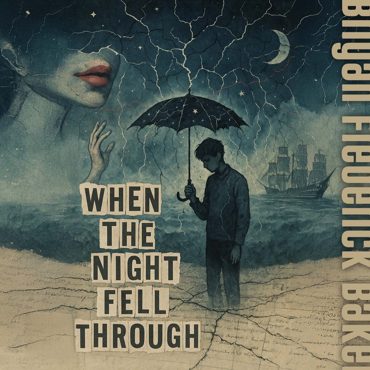 A smoky, late-night jazz noir track with slow, sultry swing rhythm, Upright bass walks lazily beneath brushed snare drums, muted trumpet phrases, and soft, reverb-soaked piano chords, Electric guitar adds sparse, tremolo-picked accents, drenched in vintage spring reverb, Vocals are low, intimate, and slightly raspy—delivered in a half-spoken, half-sung style, as if narrating a strange dream or unsolved mystery, The mood is tense but hypnotic, with subtle dissonances in the chord voicings to suggest unease, Occasional background textures—faint record crackle, distant rain, and a muted clock tick—deepen the atmosphere of surreal intrigue