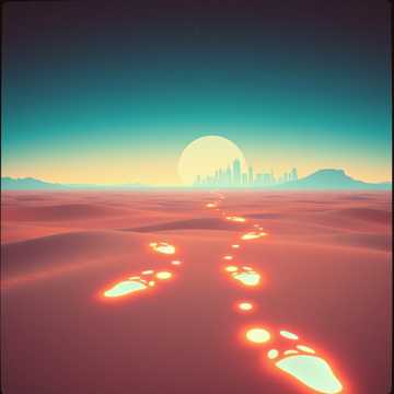 Bright Detroit-inspired glitchhop with polished drum loops, metallic ping percussion, glowing synth lines, and smooth bouncy basslines, Layers of reversed samples, glassy pads, and 8-bit digital flourishes create a nostalgic yet futuristic sound, Vocoder harmonies and subtle autotune enhance the vocals, with robotic call-and-response ad-libs woven into the groove, The arrangement builds with ascending digital arpeggios, like a system rebooting, while glitchy textures and reversed effects blur the desert imagery with a cybernetic dreamscape, Mood: hopeful, introspective, curious, “pixel dreams over a polished Detroit skyline, ”