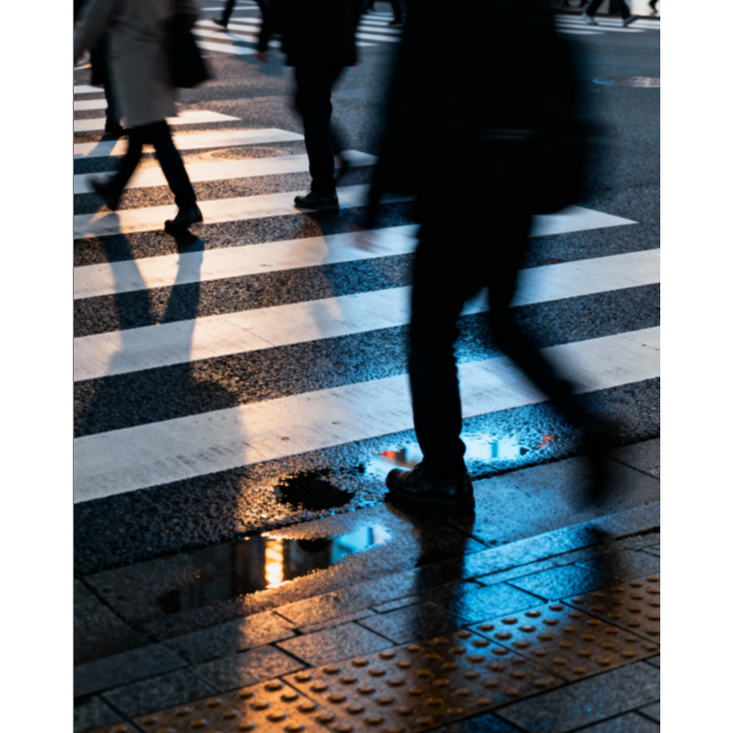 minimal techno, deep house influence, 122BPM, repetitive 4/4 kick, syncopated hi-hats, urban field recordings (traffic lights, crosswalk beeps), filtered pads, gradual layering, hypnotic groove