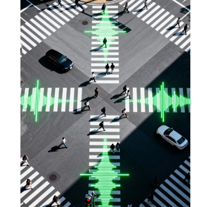 experimental techno, glitch house elements, 124BPM, crosswalk signal beeps as synth tones, car pass-by whooshes as sweeps, granular synthesis textures, syncopated rhythm, playful yet urban, dynamic stereo field