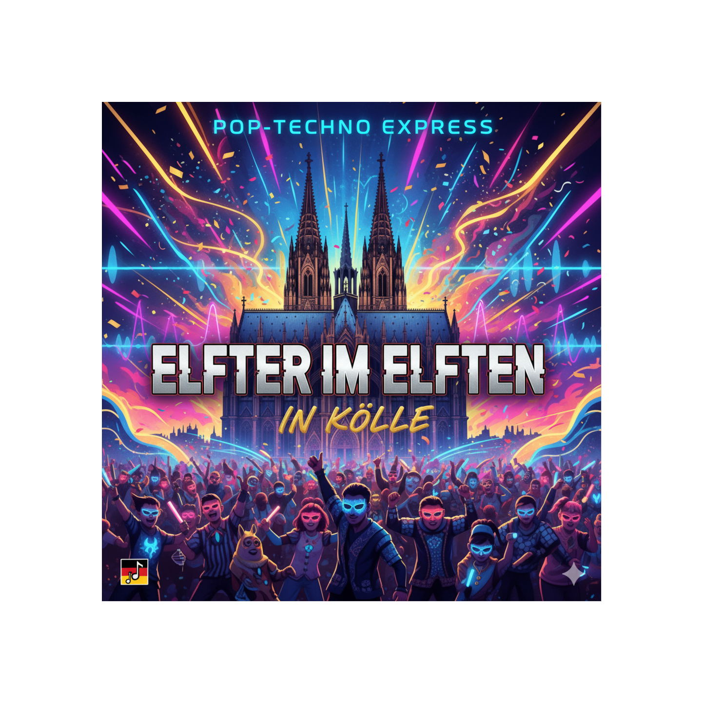 Relentless gabber kicks and distorted percussive layers drive the tempo, accompanied by metallic industrial textures and harsh synth leads, Pulsing sub-bass underpins the verses, building to towering EDM drops with aggressive risers, glitchy effects, and dynamic filter sweeps, Baritone male vocals and baritone group vocals