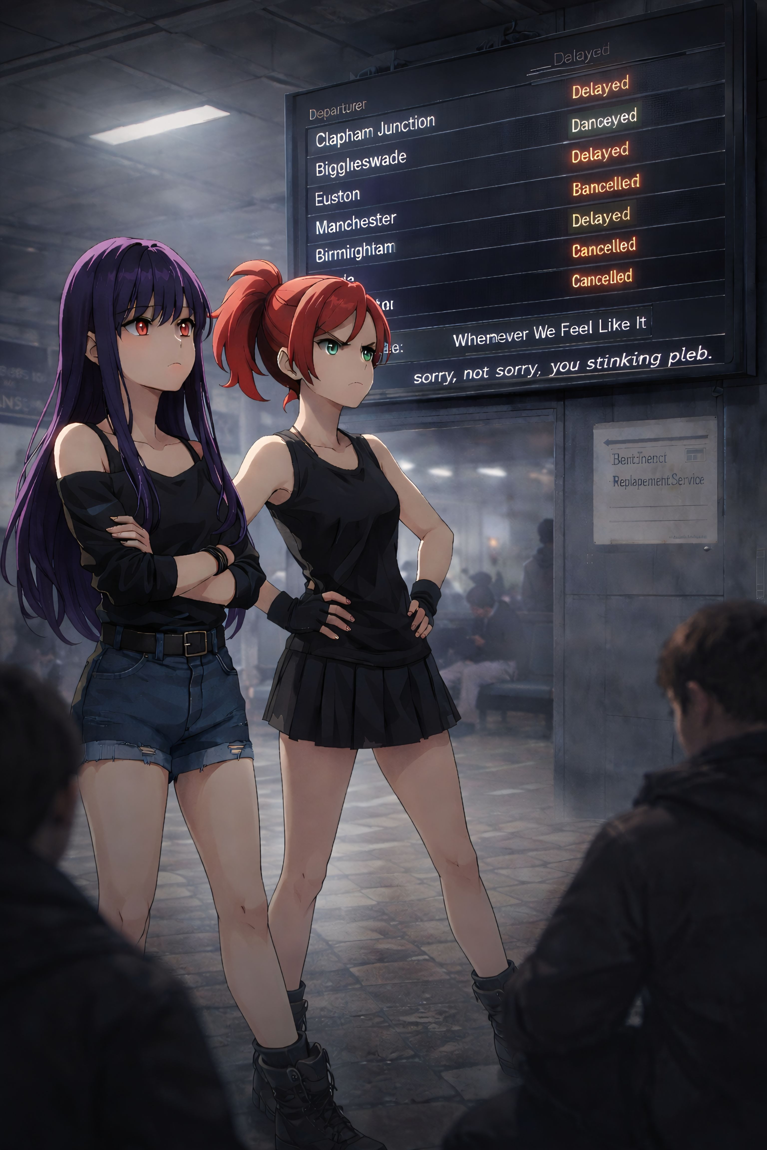 Mood: Rebellious, cheeky, sarcastic, youthful defiance with dark humour