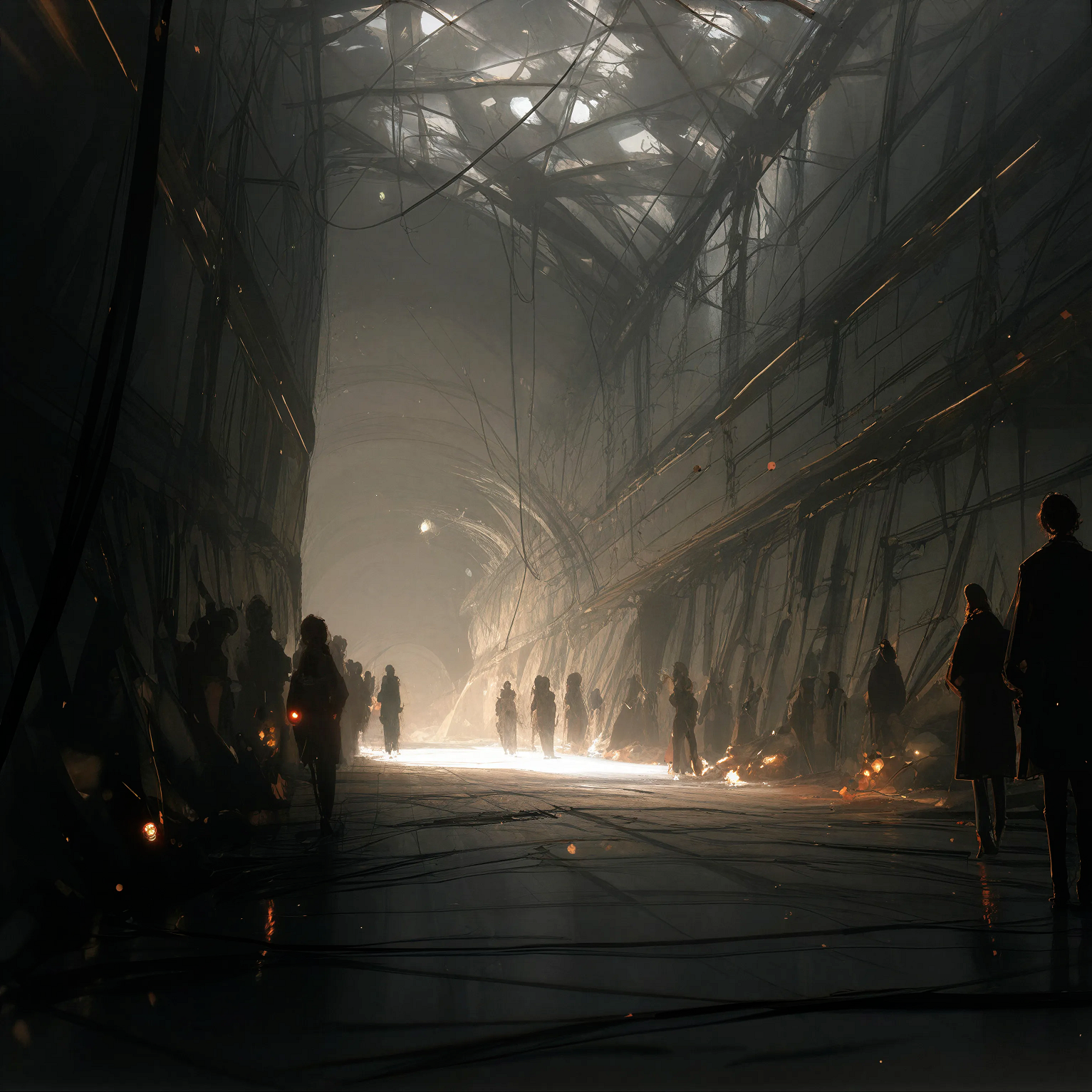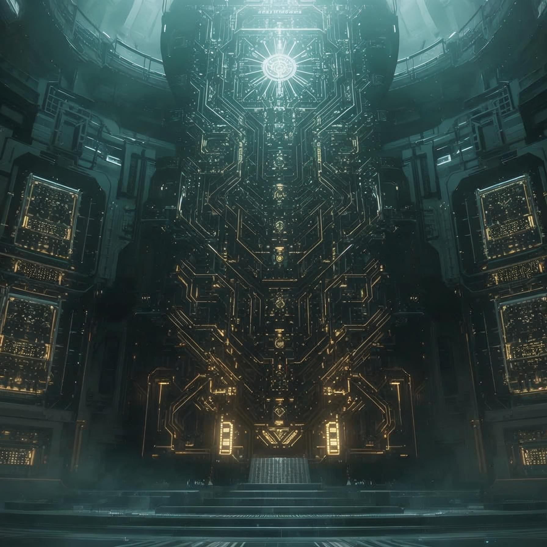 Atmosphere: Inside a vast generation ship, AI core, silent judgment