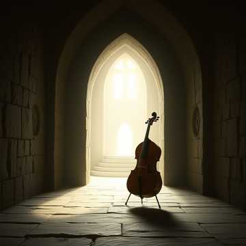 Dark cinematic orchestral scene music, tense and foreboding shifting to unexpectedly sacred, 90 BPM, E minor, Opens with low sustained strings and muffled military snare creating dread, Solo oboe enters with a lonely, isolated melody, Brass stabs and percussion build threatening intensity, Then a dramatic shift — all tension drops to reveal a warm cello and Celtic harp duet playing an ancient, reverent melody over a sustained ethereal choir chord, The contrast should feel like a crack in the darkness letting warm light through, Military drums return softly underneath but transformed — no longer threatening, now processional, Fades on a single held cello note, Cinematic production, wide dynamic range, Fantasy film score, Instrumental with wordless choir, ‑no electric keyboard, ‑no modern instruments