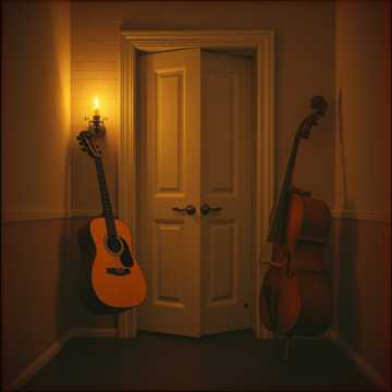 Intimate acoustic folk piece, tender and restrained, 75 BPM, F minor, Solo fingerpicked acoustic guitar opening — sparse, deliberate, each note placed carefully like footsteps in a quiet corridor, Soft piano chords join with warmth, A single cello line enters underneath, aching and slow, Brief moment of near-silence, Guitar and cello play parallel melodies, close but not quite touching — suggesting two people separated by a door, Subtle stone-room ambient reverb throughout, Extremely intimate production, close-mic'd, no percussion, Should feel like overhearing a private moment at 2am, Fades with guitar slowing to stillness, Instrumental, ‑no electric keyboard, ‑no modern instruments