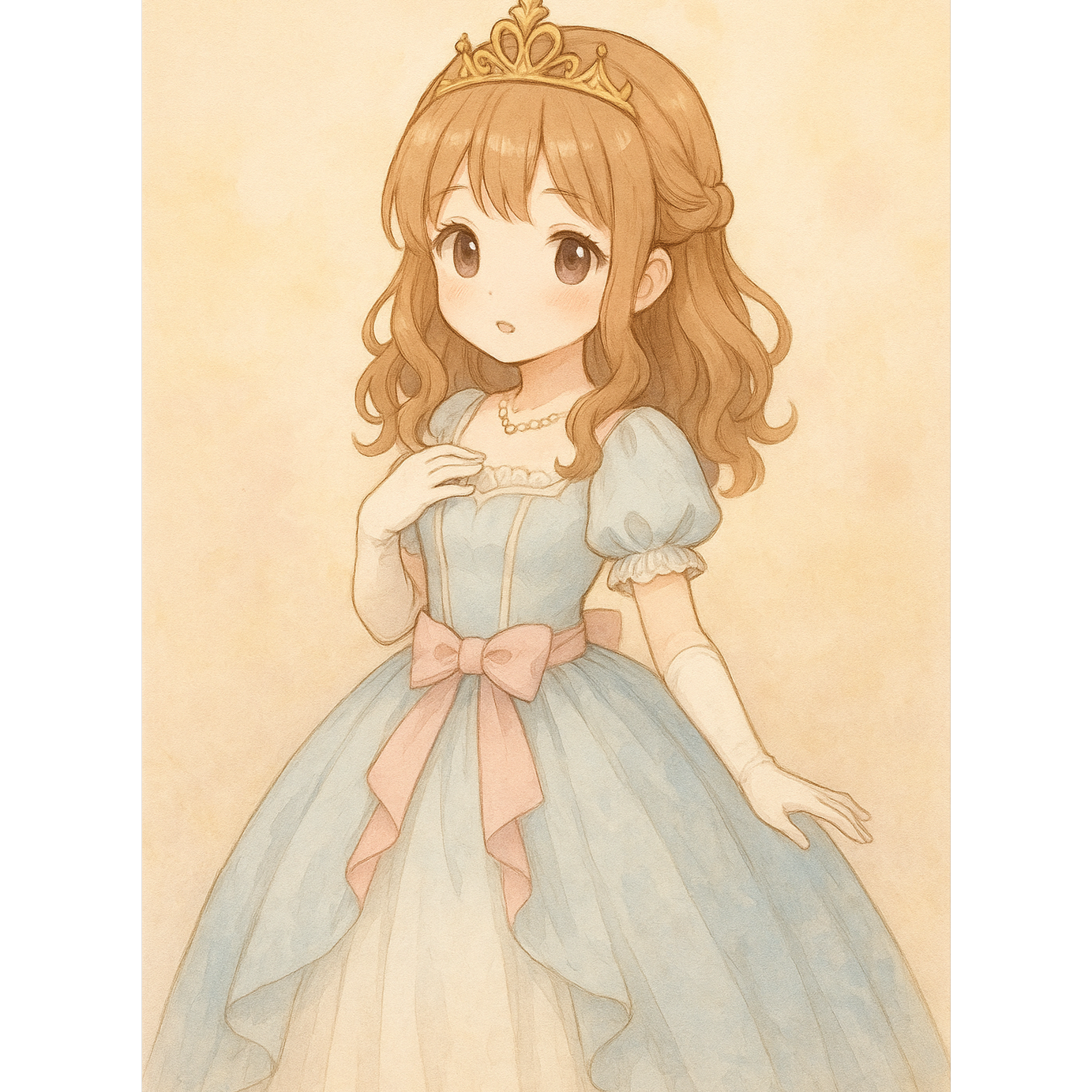 The intro should feel whimsical with delicate harps and music-box-like glockenspiel melodies, evoking a tea party in Wonderland, The verses carry a floating atmosphere with airy synth pads, pizzicato strings, and playful woodwinds, resembling the lightness of meringue, The choruses bloom with warm, layered harmonies and soft electronic beats, resembling a dreamlike pop waltz, In the bridge, introduce swirling arpeggios and a subtle clock-ticking rhythm, creating a sense of chase and transformation, The outro resolves gently with a lullaby-like piano and soft reverb tails, as if waking from a dream, The vocal delivery should be soft, whimsical, and princess-like, with a childlike innocence carried through gentle doubling and subtle reverb, ‑rock guitars, ‑heavy drums, ‑country twang, ‑aggressive EDM drops, ‑distorted vocals, ‑metal riffs, ‑blues harmonica, ‑acoustic folk strumming, ‑punk energy, ‑live band jam feel, ‑rap verses