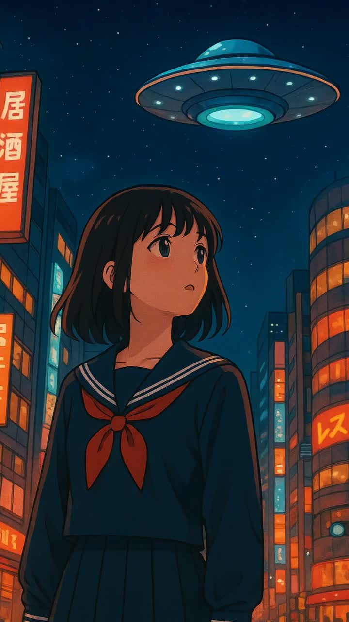 The intro features sparkling synths and transparent pads, evoking a city pop nightscape, The verse features a light electro-pop beat overlaid with rhythmic shamisen phrases, creating a modern Japanese urban feel, The chorus combines a bouncy synth bass with a powerful taiko drum rhythm, creating a cosmic floating feeling intertwined with the excitement of a festival, The bridge features a taiko drum break followed by a shamisen solo, while the synth creates a starry sky with sparkling arpeggios, The vocals feature a pop and catchy melody with a slightly dreamy reverb treatment, painting a futuristic image of Tokyo, Overall, this is urban electro-pop that blends Perfume's digital feel with the elegant sounds of a traditional Japanese instrument band, ‑Guitar riffs, ‑rock drums, ‑acoustic strumming, ‑country elements, ‑jazz swing, ‑blues progression, ‑folk taste, ‑lo-fi texture, ‑grunge, ‑metal shouts, ‑live band feel