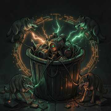[Glitchy IDM] [Stutter-effect 6-string bass] [Bit-crushed percussion] [Erratic 130bpm] [High-frequency digital chirps] [Mechanical "coughing" sounds]