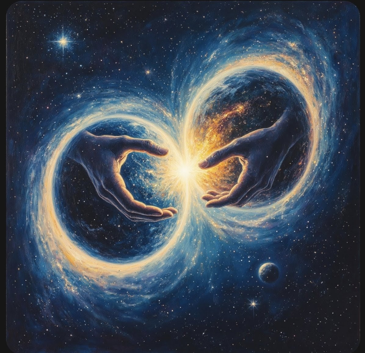 This cosmic acoustic ballad fuses slap house beats with unusual R&B rhythms and touches of French chanson, Ambient cosmic effects and airy pedal layers create an ethereal foundation, Male and female vocals weave timeless harmonies above lush guitar, with a memorable, catchy chorus riding lush, romantic textures, drum section, catchy rhythm, deep atmosphere