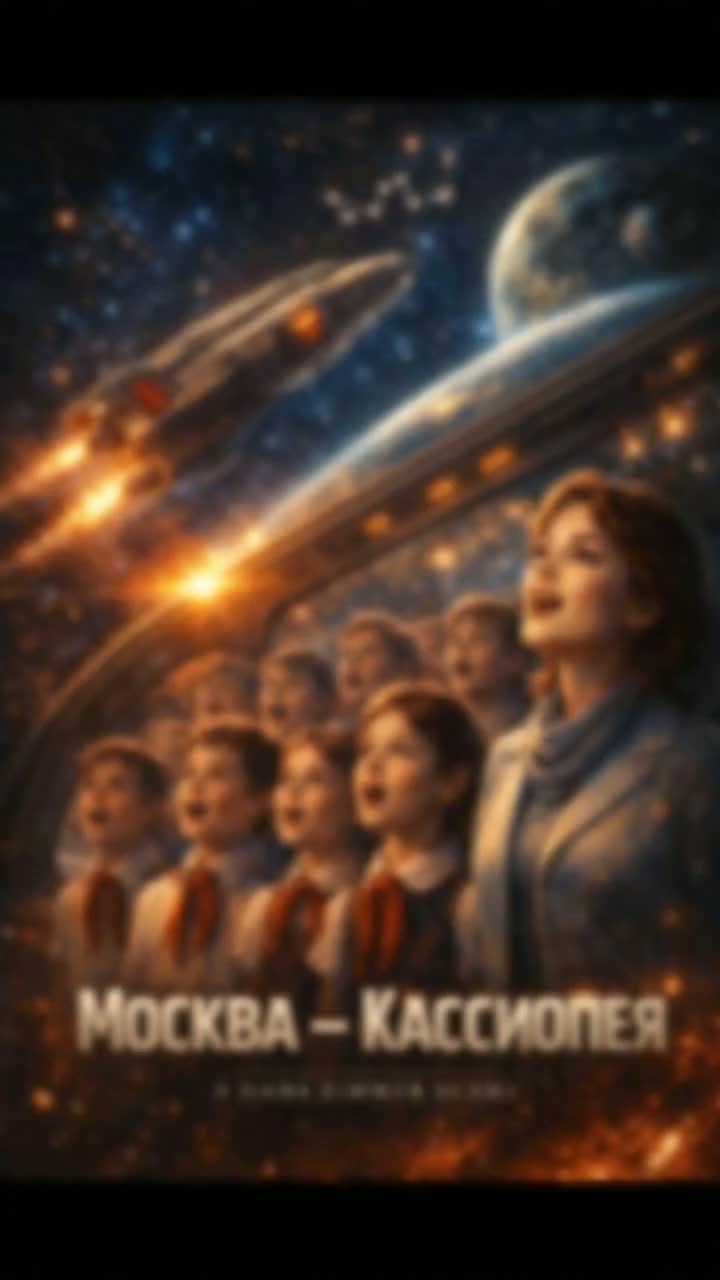 Soviet-style space song in the spirit of the film “Moscow — Cassiopeia”, bright and touching, A children’s choir sings the main theme, with a warm mezzo-soprano soloist joining in the chorus, Medium tempo, march-like flight rhythm, orchestral arrangement with soft 1970s-style synthesizers, bells and strings, childlike sincerity, a sense of dreaming and flying, clean Russian-style vocals, nostalgic Soviet sci-fi atmosphere, wide choral sound, cinematic ending