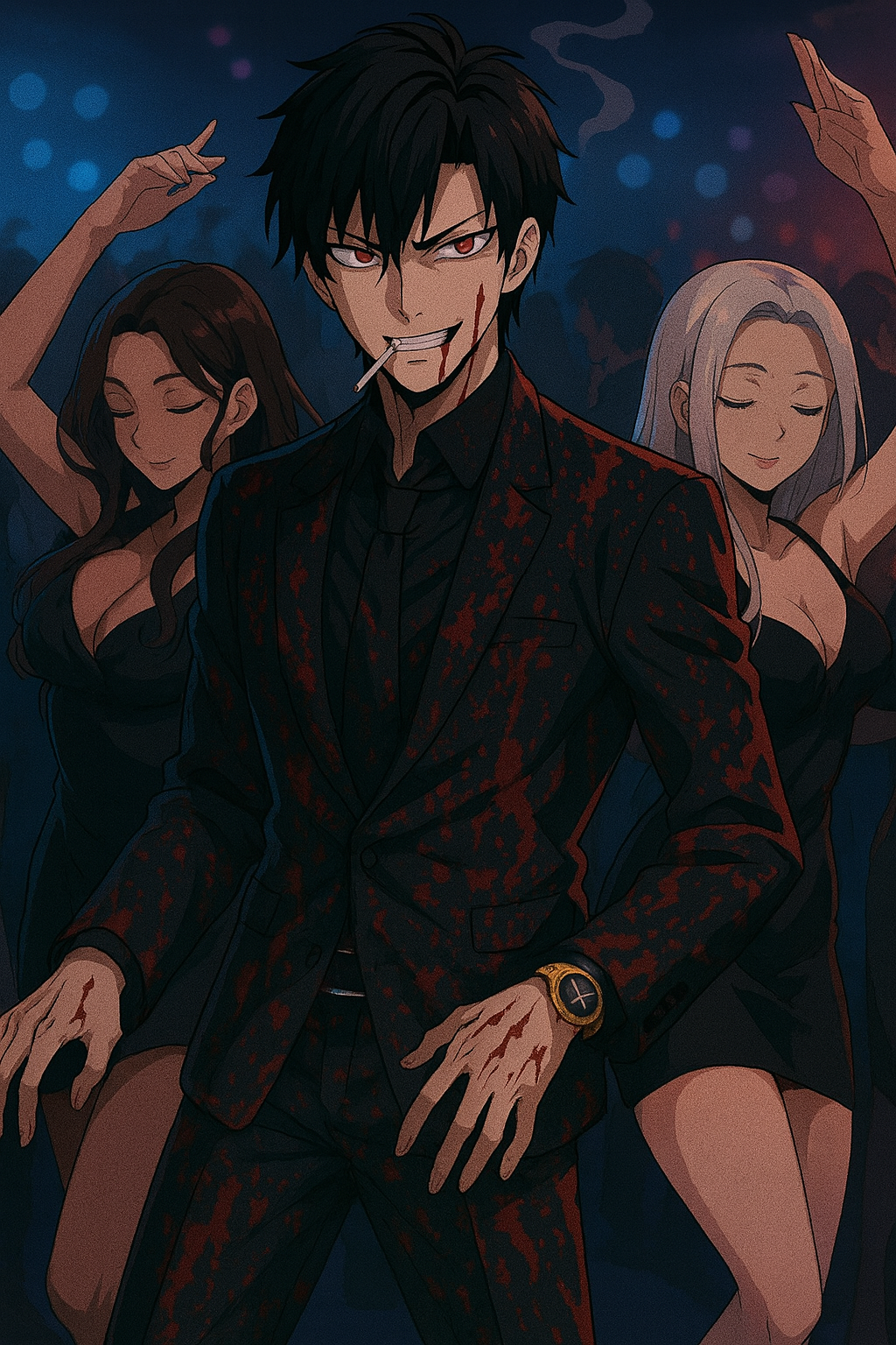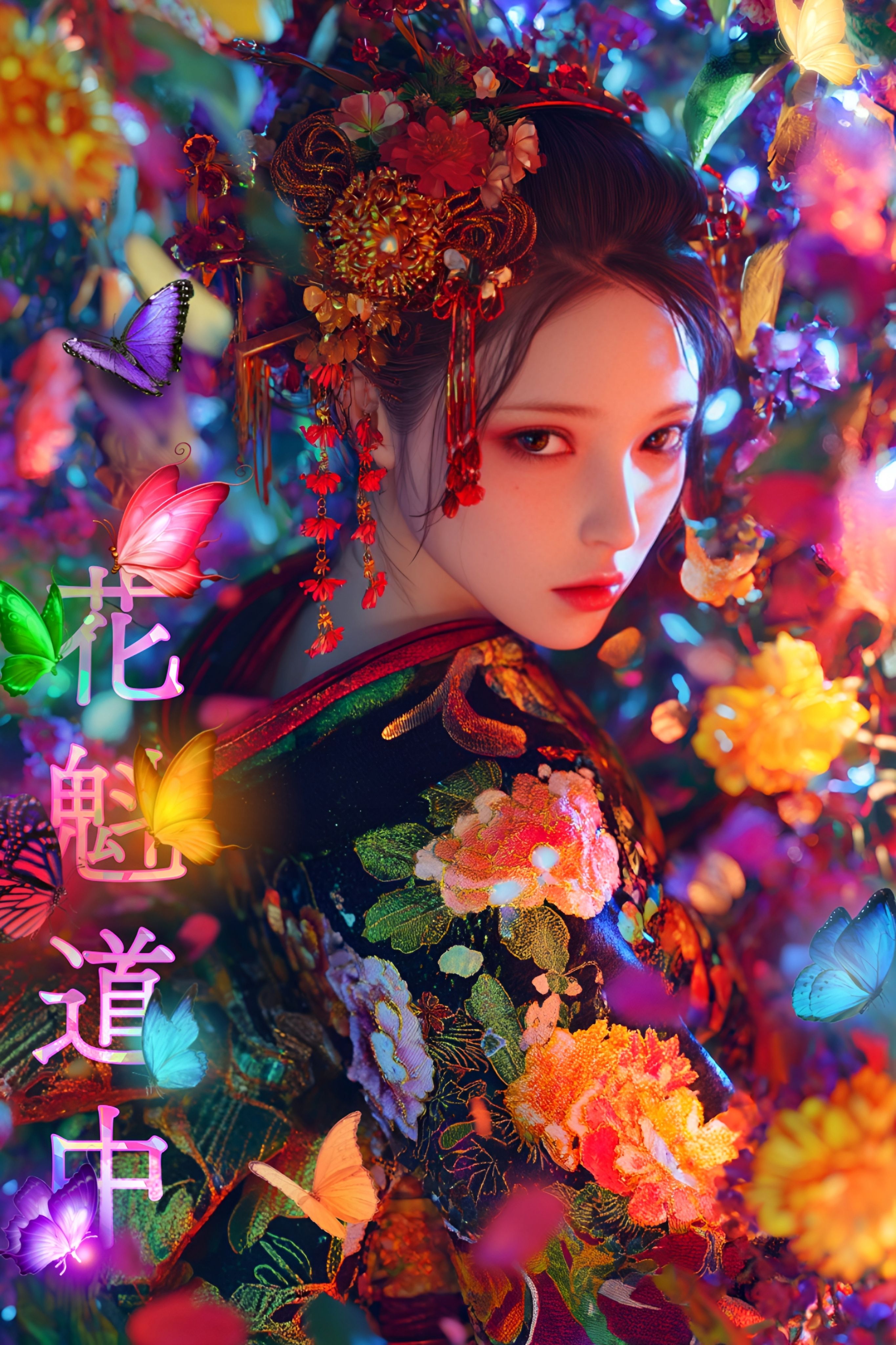 Japanese dark rock, rap, grid female vocal, upbeat, Blend traditional Japanese instruments (shamisen, shakuhachi ) with rock instruments (electric guitar, heavy bass, heavy drums) and psychedelic synth textures, Vocal style: sultry, powerful, slightly breathy female voice, with a hypnotic and dramatic tone