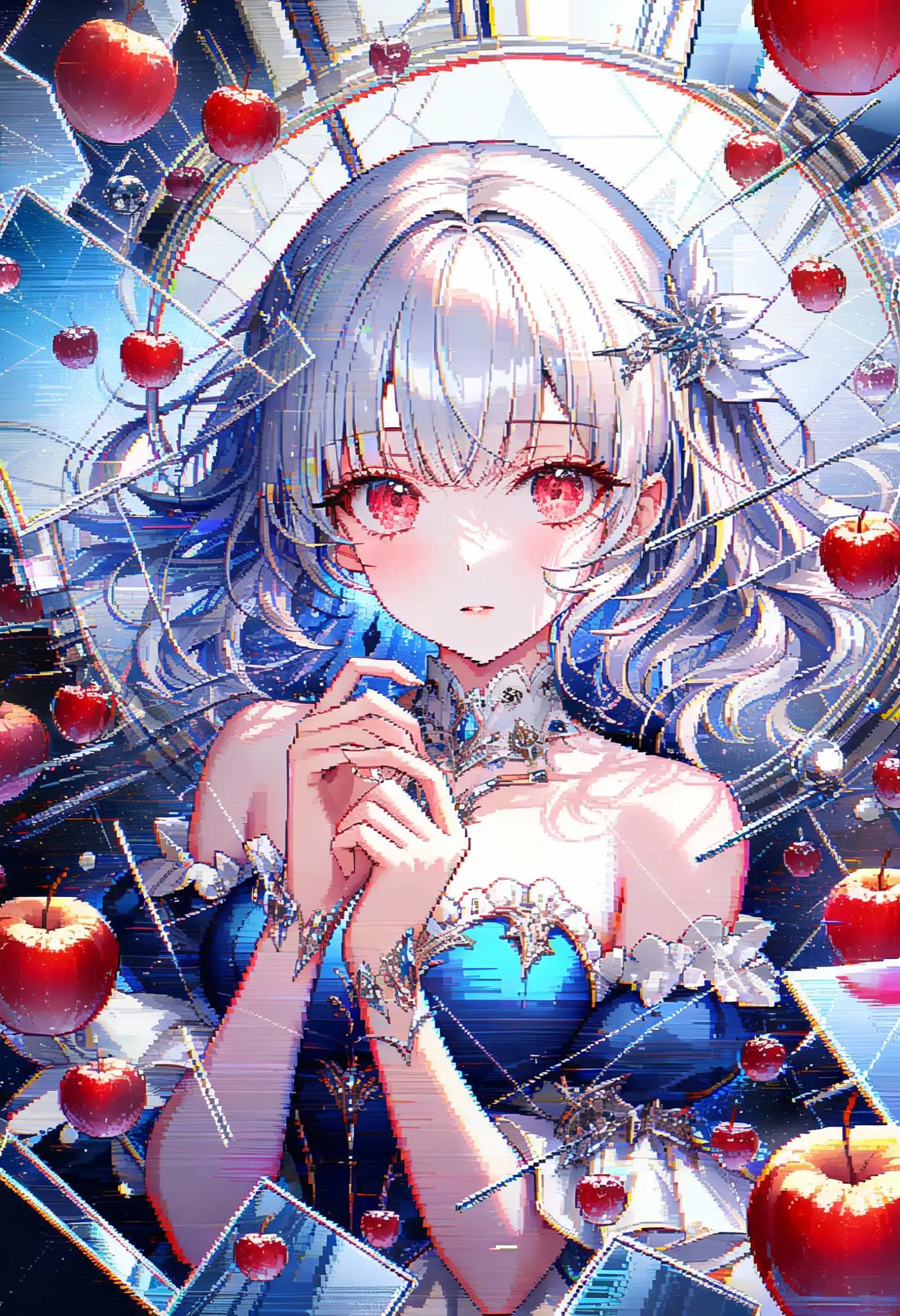 Cyber Liquid Funk × Glitch Trance × Cinematic Artcore, A dark digital fairy tale where Snow White exists as an AI trapped inside a recursive beauty algorithm, Ethereal female vocals and crystalline liquid drums merge with glitched orchestral piano, shattered mirror synths, and pulsating data streams, Cold metallic reverb, digital poison drops, and emotional cinematic intensity evoke