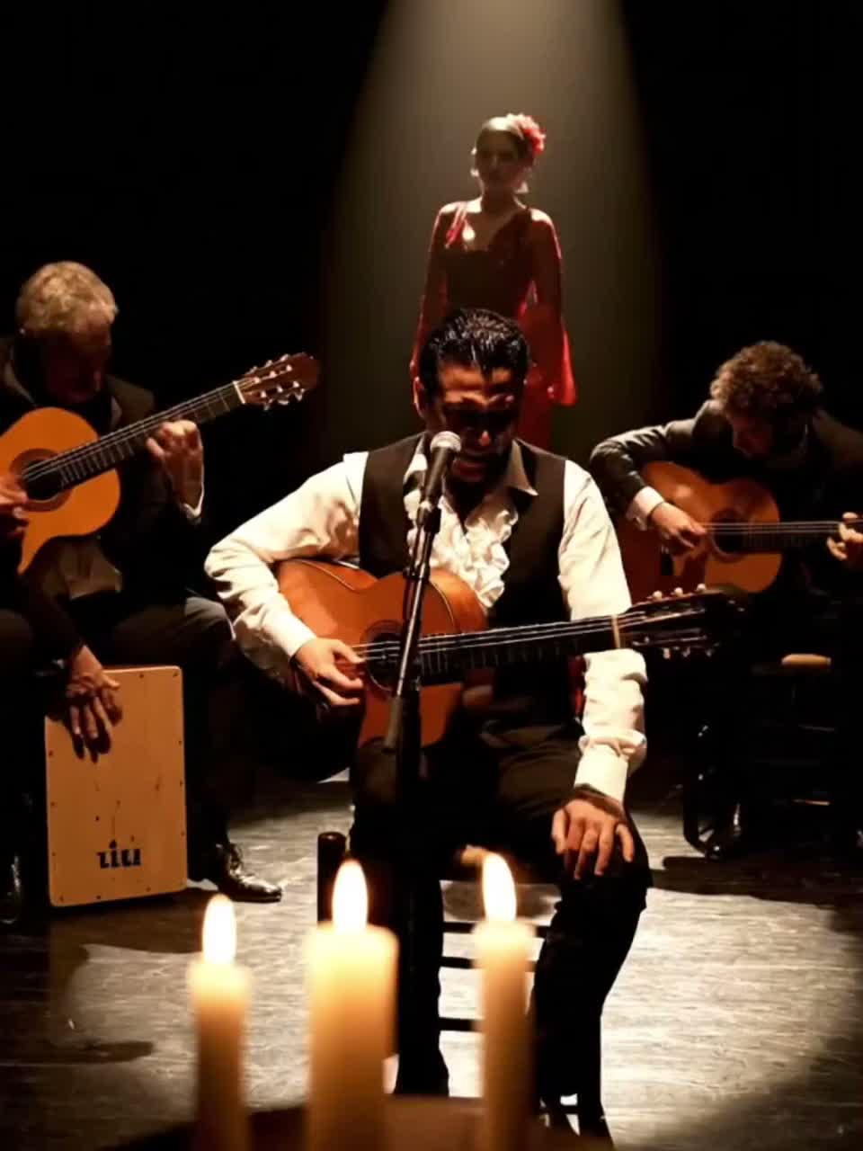traditional flamenco, Spanish guitar, palmas, zapateado, cajon, instrumental, no vocals, cinematic, dramatic, passionate, duende, live recording feel, acoustic, melancholic