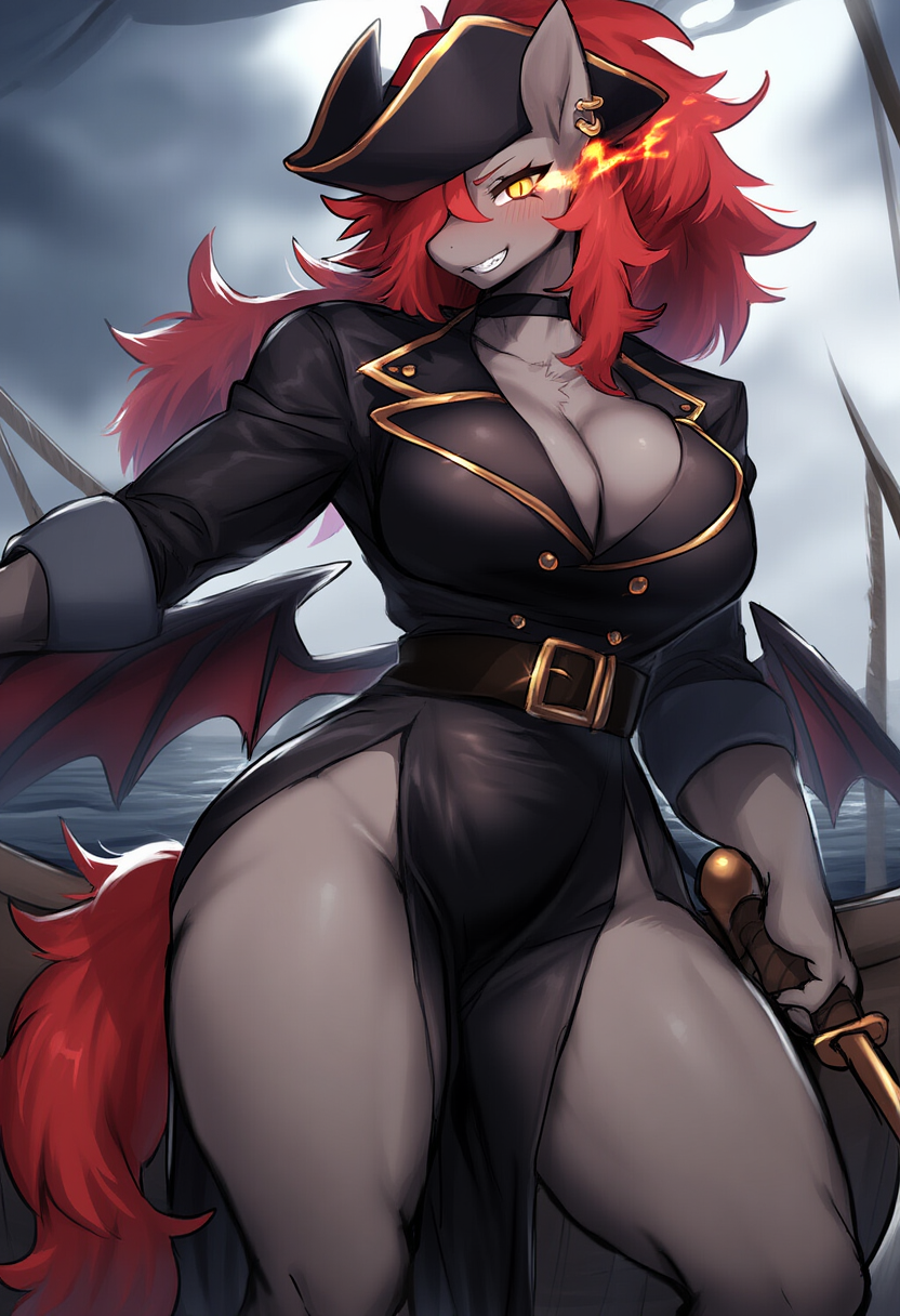 Pirate metal with fast folk-metal rhythms, heavy distorted guitars, thunderous drums, and energetic accordion/violin/hurdy-gurdy melodies