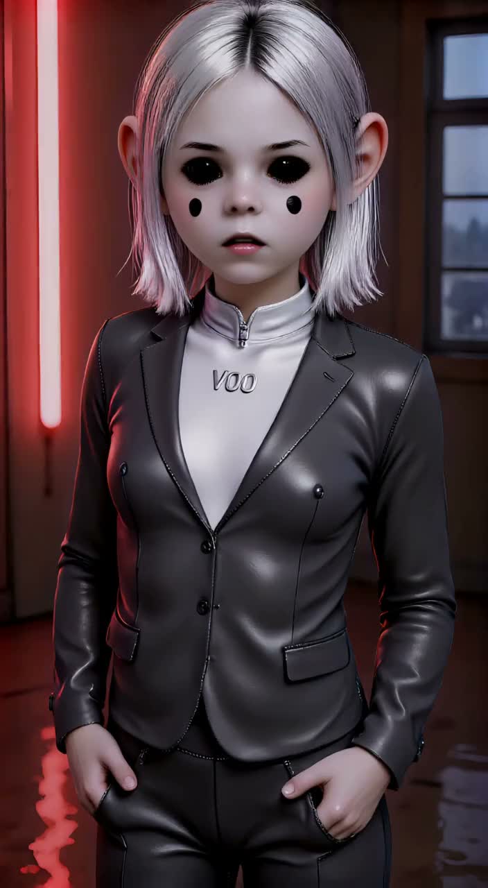 Begins with raspy female vocals over brooding synths, glitchy, stuttered sub-bass, Beat layers in fractured vocals, distorted synths, Midway, cute vocals meet dark bubblegum pop, 8bit, vampiric chants, sharp tonal shifts, Outro: “System shutdown, ” bass-heavy, growling rap, chopped, fierce energy, ‑snare, ‑cymbal, ‑hi-hat