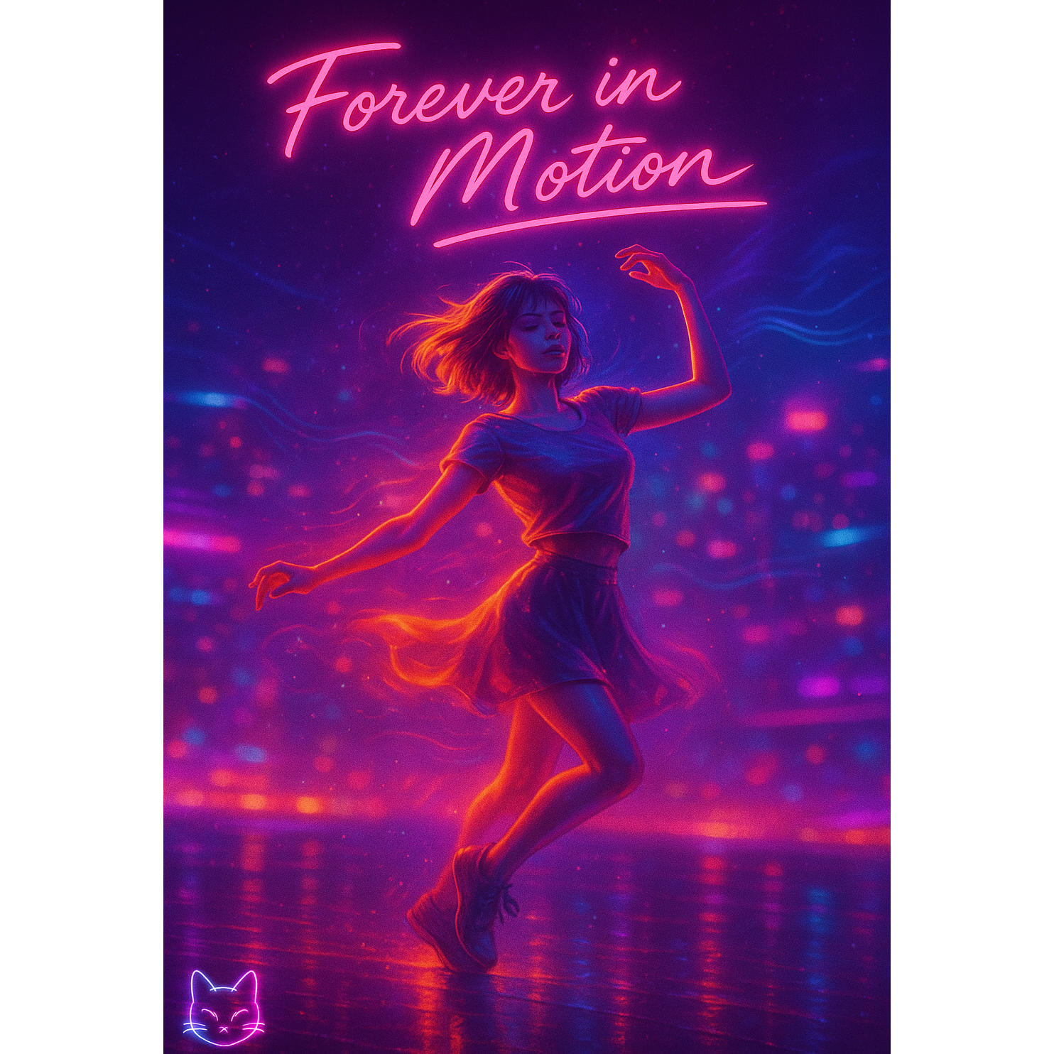Glitchcore, noise pop, trip-hop, art pop, lo-fi electronic, disco house, future bass, wave, synthwave, big beat, progressive breaks, Midtempo (118–124 BPM), key of A minor, Airy, detached, and androgynous female vocals—breath-forward, softly glitched, lightly vocoded, diffused into the mix with dual-layer detuning for spectral warmth, Production blends warm analog synths and disco bass with digital distortion, side-chained pads, rhythmic glitches, and rubbery low-end, Four-on-the-floor groove evolves into fluid breakbeat sections; granular echoes and tape wobble create a neon-dream texture, Intimate yet physical, minimalist yet euphoric—like dancing through static and light, Vocal hooks built on layered “oh-oh-oh” and “ah-ah-ah” refrains between short verse bursts, Atmosphere: shimmering midnight motion, digital warmth, endless glow