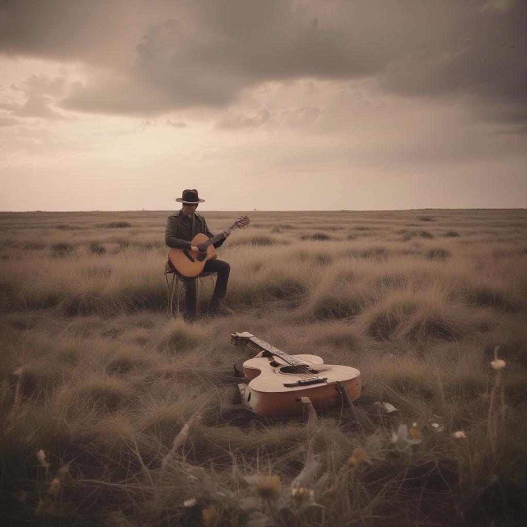 A male vocalist sings a melancholic, narrative-driven song with a slow tempo, The instrumentation features a clean melancholic acoustic guitar playing arpeggiated chords, a poignant bayan (Russian accordion), a bass guitar providing a walking bass line, and a drum kit with a soft, brushed snare sound, Vocals: The lead vocal is a tired, weathered, mature male voice (baritone), full of emotion and soul, Backing vocals (male or mixed) are moderate, mainly in choruses for depth, should be subtle, The vocal delivery is intimate and conversational, almost spoken word at times, with a baritone range, The song structure is verse-based, with no distinct chorus, maintaining a consistent mood throughout, The production is sparse, emphasizing the vocal and acoustic elements, creating a somber and reflective atmosphere, The key appears to be minor, contributing to the overall mournful tone, There are no significant dynamic shifts or complex melodic phrases, keeping the focus on the lyrical content