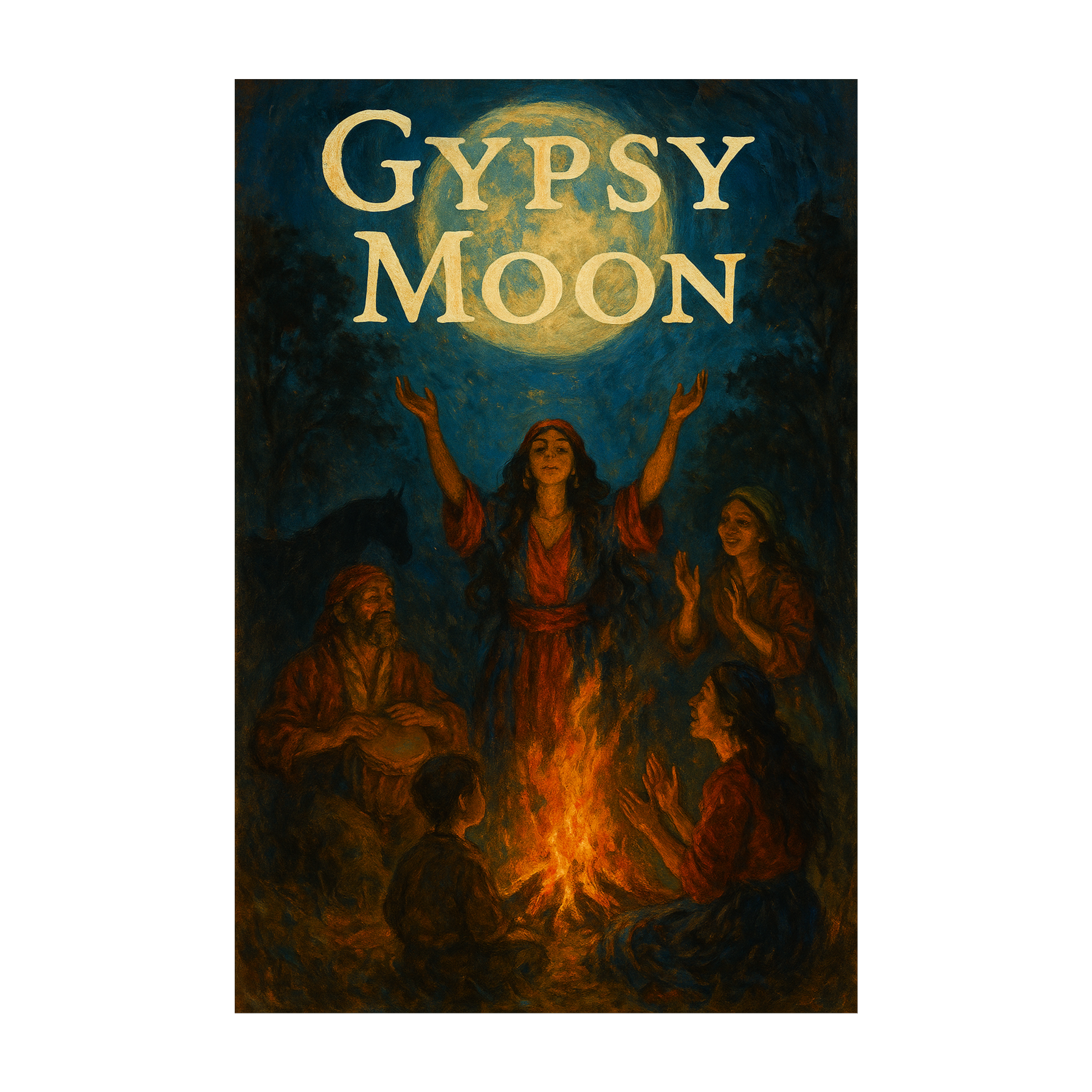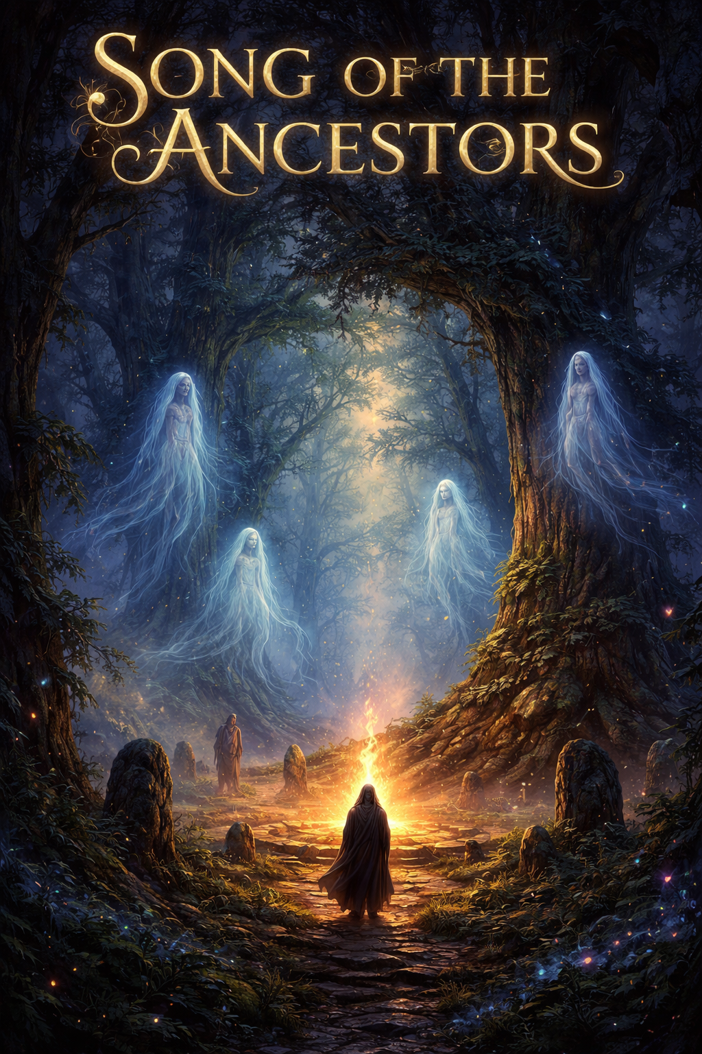haunting nordic celtic pagan folk ballad, ethereal female vocals, harp, fiddle, hurdy gurdy, frame drum, and flute, mystical and emotional, with ancient forest atmosphere and flowing rhythm, sounds like an old pagan song of moonlight, magic, and wandering spirits