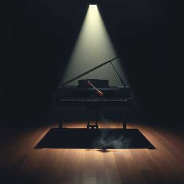 metal, Doom metal wall of down-tuned guitars and dragging toms wrapped around a lonely, reverbed grand piano; male vocals in a mournful baritone that grow into a ragged roar, Tempo lurches between suspended half-time and surging double-time; piano carries the core melody, guitars mirror it in dissonant harmonies, Big, decaying crashes on section changes; sparse bass in verses, cavernous low-end and stacked octave vocals in the chorus, doom metal