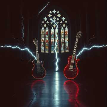 instrumental, neoclassical metal; intricate guitar leads with a baroque-inspired structure, layered clean and distorted tones weave together, metal, chill, supported by a subdued bassline and soft double-kick drums, occasional violin-like guitar sweeps add a hauntingly classical touch