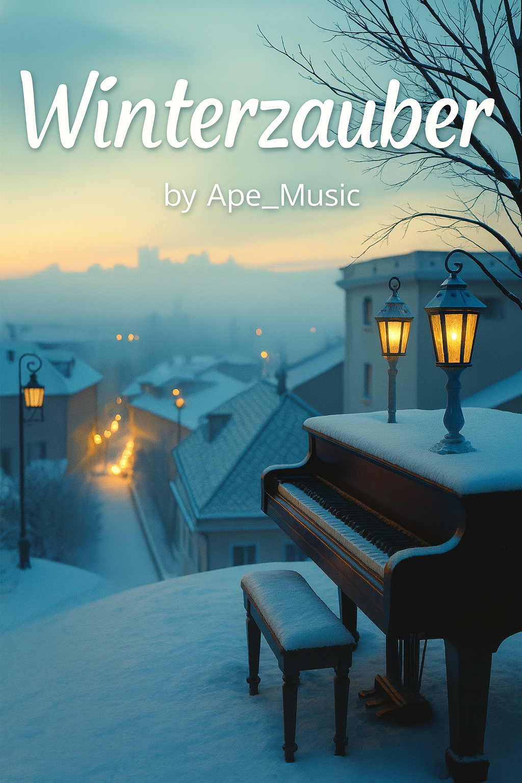 German Cinematic Winter Pop, Orchestral, Magical, 4/4 time signature, 85 BPM, warm acoustic guitar, piano, sleigh bells, lush strings, glockenspiel, enchanting female vocals, emotional, melodic, cozy atmosphere