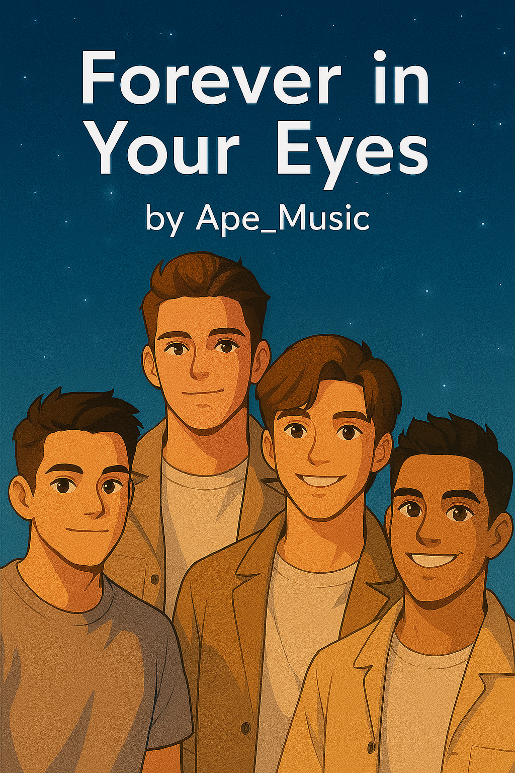 Style: 2000s Pop, Boyband, Emotional Ballad Mood: Romantic, heartfelt, dramatic lift Tempo: Mid-tempo (90–100 BPM) Instrumentation: Acoustic guitar arpeggios, lush strings, soft piano, layered harmonies, subtle percussion, synth pads for atmosphere Vocal Style: Warm male lead, boyband harmonies, falsetto ad-libs, emotional delivery