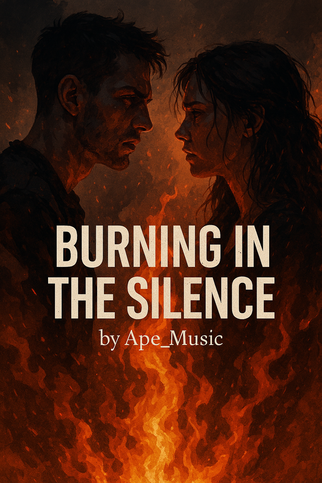 Cinematic Dark Pop × Emotional Storytelling Rap × Dramatic Orchestral Elements × Heavy Atmospheric Tension × Deep Sub-Bass × Slow-Building Intensity × Female Power Belting × Male Confessional Rap × Fire and Smoke Aesthetic × Haunting Pads × Wide Reverb Tails × Emotional Grit × Minor Key Darkness × Pulsing Drums × Rising String Crescendos × Distorted Ambience × Piano Grand × Female Soft Voice