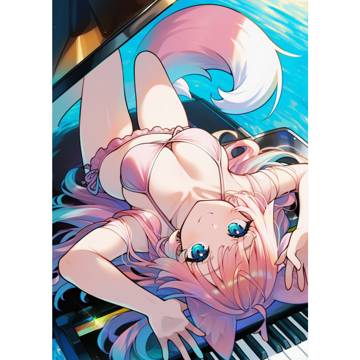 Create an alternative J-pop track, with playful yet emotional female vocals layered over piano-driven fusion-pop, Intro begins with whimsical piano arpeggios, glitchy synth textures, and filtered ambience, Verse 1 features hushed, intimate vocals over jazzy piano chords and syncopated bass, Build-up adds quirky percussive hits, offbeat claps, and sparkling synth fragments, Chorus bursts into energetic piano stabs, driving drum grooves, and soaring pop vocals colored with surreal effects, Verse 2 shifts to falsetto over minimal piano, lo-fi beats, and reversed sounds, Pre-chorus introduces tempo shifts and unexpected pauses, creating a dreamlike unease, Emotional chorus swells with layered harmonies, lush synth pads, and playful vocal chops, Bridge grows cinematic with bolero-like piano ostinato, climaxing in a distorted, euphoric finale, ‑powerful, ‑shout