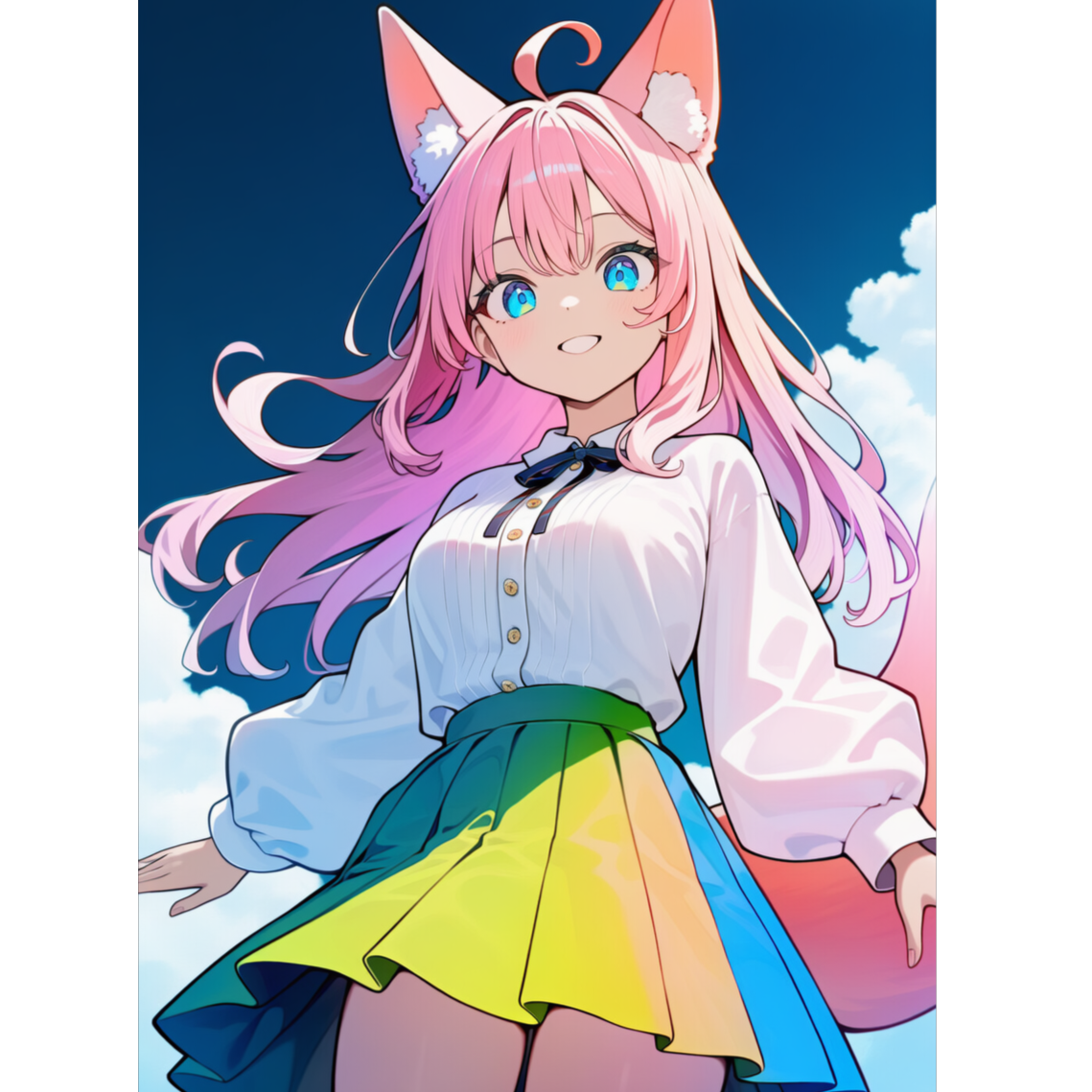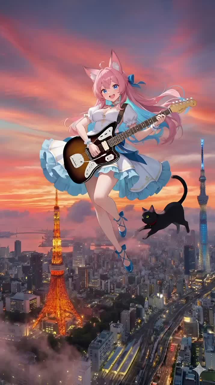 Instruments: virtuosic Polyphia-style guitars with tapping, harmonics, math-rock grooves, djent-inspired riffs + jazzy chords; funky bass runs; tight polyrhythmic drums with dynamic shifts; piano/strings for dramatic accents, vocal : heartfelt playful cute female vocals with soft vibrato, Vocals are breathy, intimate, and layered in close harmonies, almost whispered, Layered harmonies + call-and-response textures, Mood: emotional, rebellious, urban, dramatic, Production: wide stereo guitars, raw front vocal, Bridge: Polyphia-style instrumental jam, Outro: glitchy guitar echoes with whispered vocal ad-libs, powerful, shout, ‑powerful, ‑shout