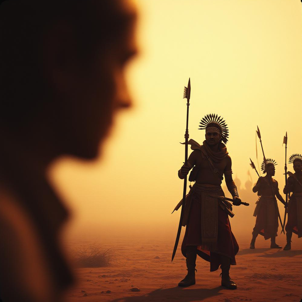 Hardcore rock track with distorted guitars, aggressive live drums, and heavy low-end, fused with cinematic epic thunder beats and large war-style percussion, Feature deep Sanskrit male vocals with guttural throat singing, ritualistic overtone drones, and powerful battle chants, Include massive anthemic choruses with layered chant vocals, a heavy distorted bass guitar solo backed by tribal drums and thunder impacts, and a crushing breakdown with slow cinematic hits before a full-force final chorus, Production emphasizes scale, raw intensity, dense guitars, thunderous percussion, and ancient ritualistic war energy