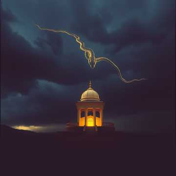 Instruments: Heavy 808 bass, distorted electric guitars, punchy trap drums, metallic snare, layered choir, ambient pads, reverb-heavy shlokas, thunder-like percussion