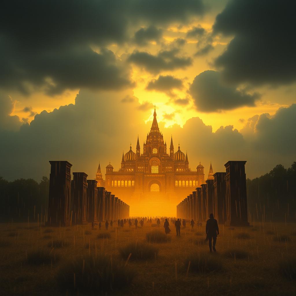 Instruments: Heavy 808 bass, distorted electric guitars, punchy trap drums, metallic snare, deep male chant vocals, ambient pads, reverb-heavy, thunder-like percussion