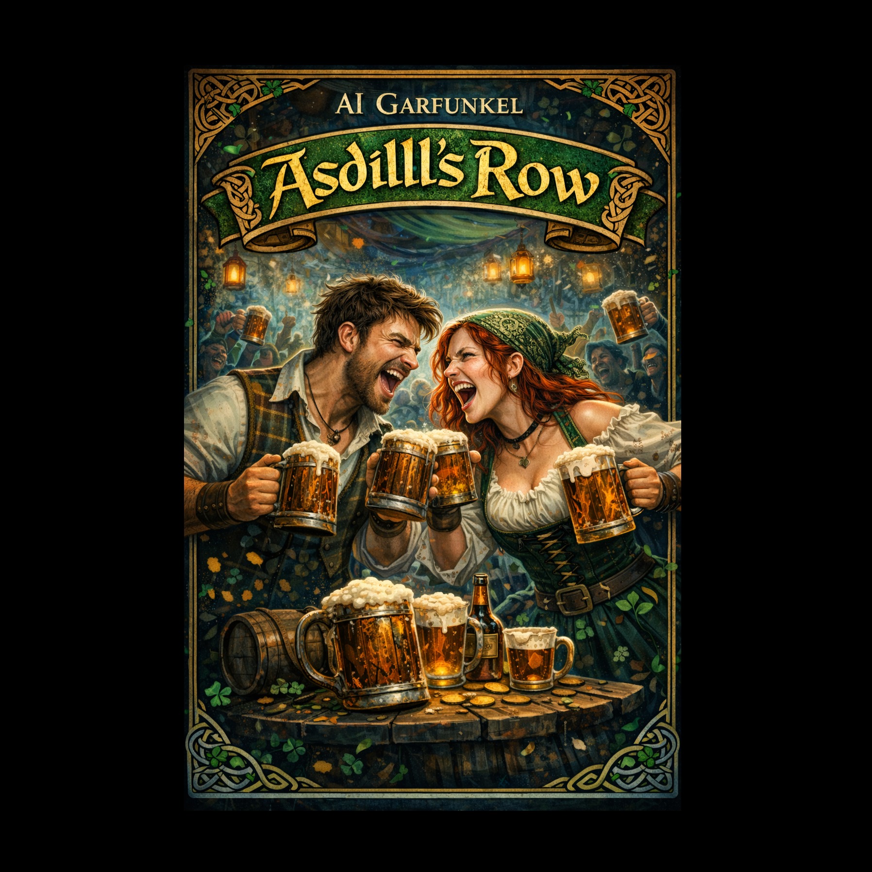 A high-energy, theatrical Celtic punk track with a fast-paced 4/4 tempo and a raucous, tavern-like atmosphere, The arrangement features a prominent, driving fiddle melody, distorted electric guitars playing power chords, and a punchy, rhythmic drum kit with heavy use of crash cymbals, A bright, melodic accordion provides harmonic texture and folk flair, The vocals are a dual-male performance, characterized by a gritty, gravelly baritone and a slightly cleaner tenor, often trading verses and joining for harmonized, shout-along choruses, The song structure follows a standard verse-chorus-verse-chorus-bridge-chorus pattern, including a spirited fiddle solo over a punk-rock rhythm section, The production is polished yet retains a raw, live-performance energy with subtle reverb on the vocals to simulate a large hall or pub