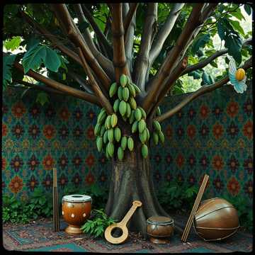 Pop tropical infantil con toque “místico alegre”: ukulele y guitarras acústicas isleñas, percusión ligera (shakers, cajón, palmas) y glockenspiel, fusionados con instrumentos chinos brillantes y expresivos: dizi (flauta de bambú) para melodías ágiles, erhu para líneas cantables, guzheng para arpegios ondulantes y yangqin para destellos rítmicos; 104–108 BPM en Do mayor; voces infantiles claras con coros pegajosos