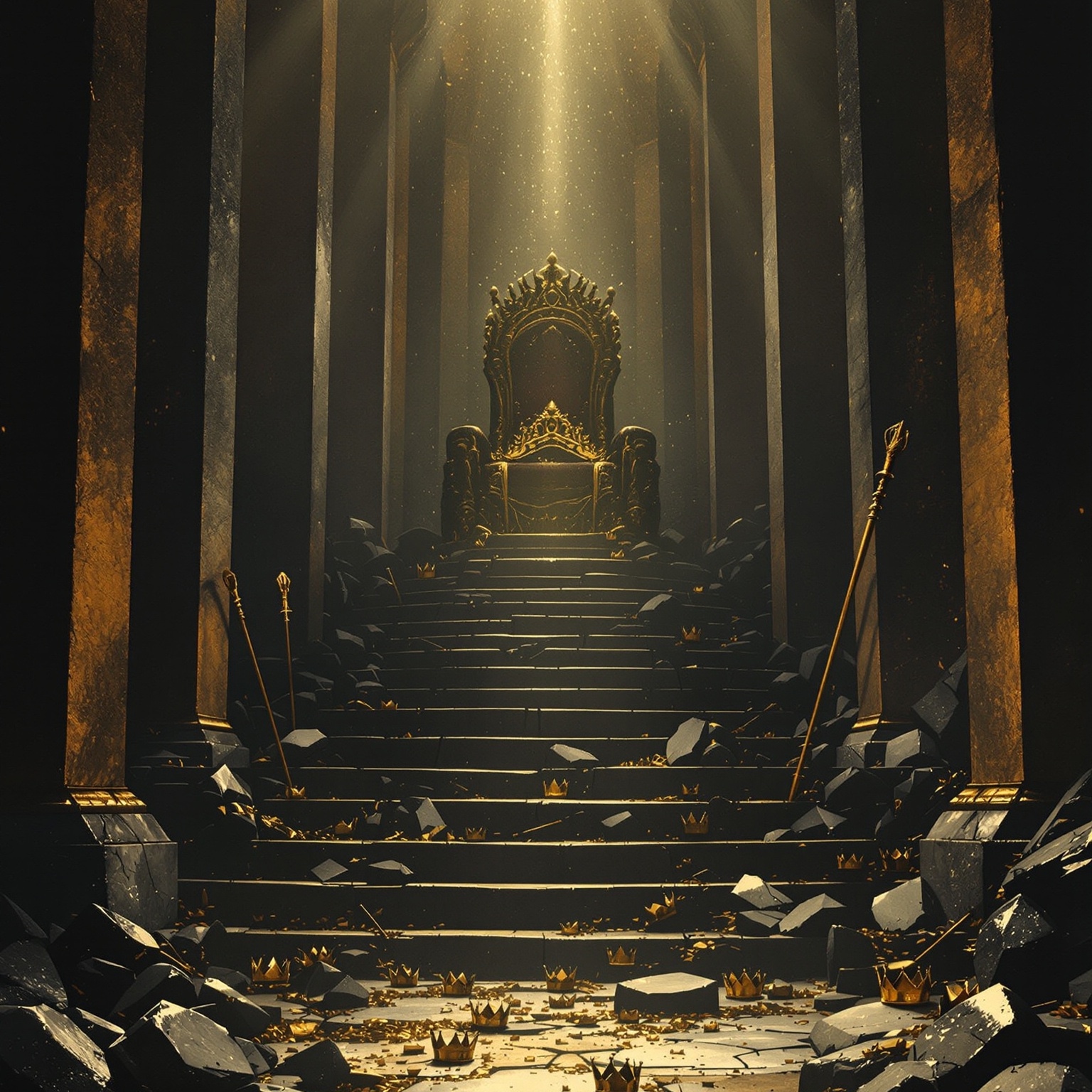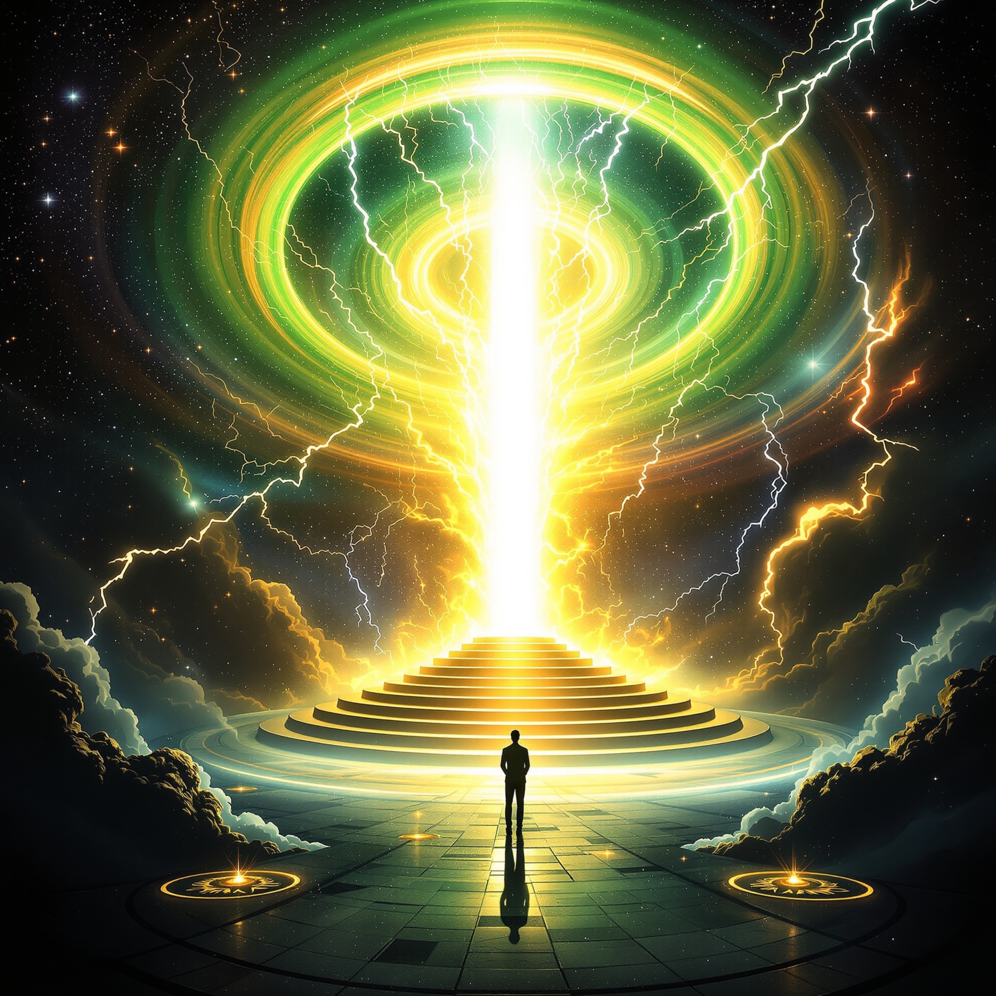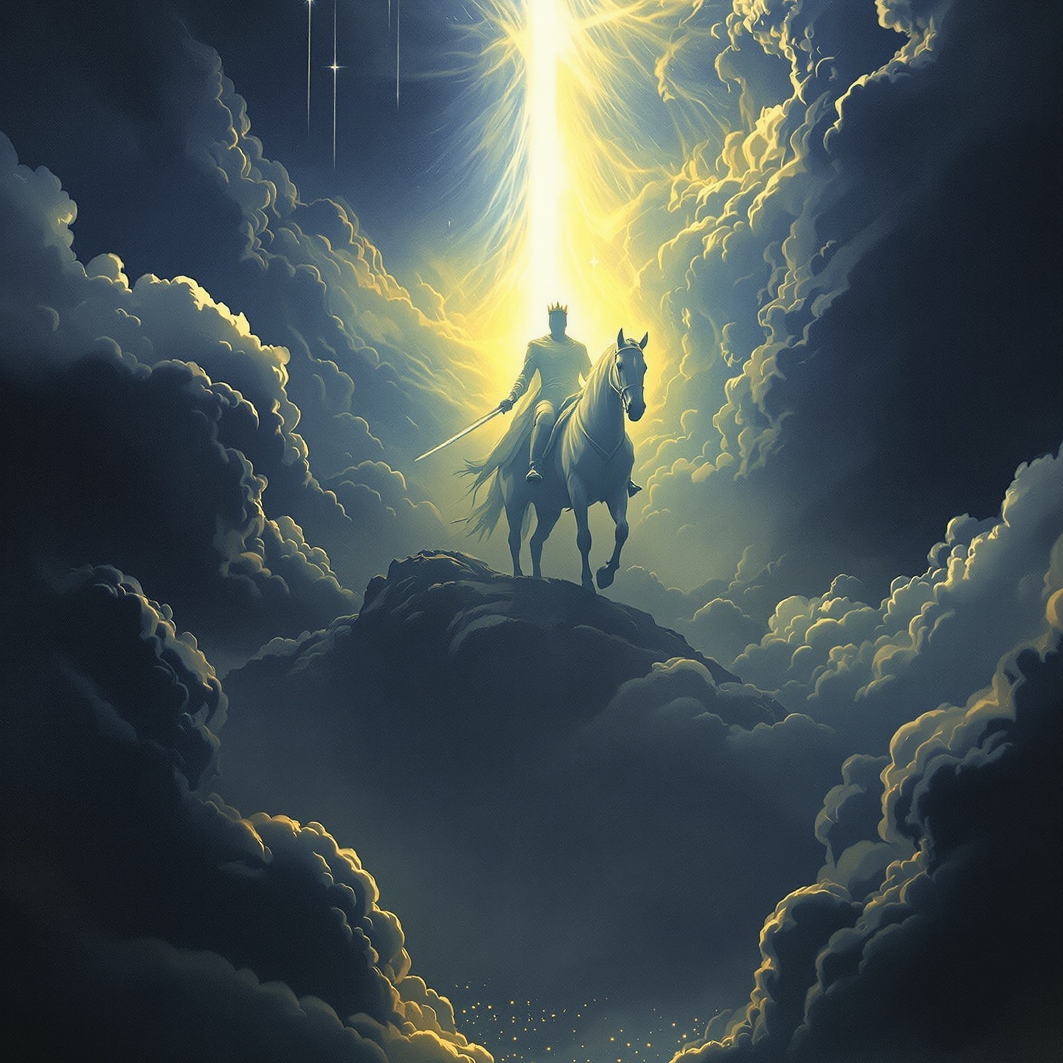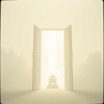 Slow, cinematic instrumental interlude leading into a throne room track, No beat at first, just deep drones, swelling orchestral and synth pads, distant thunder, and flashes of brightness, After a long build, a calm, reverent male voice speaks scripture about the door open in heaven and the throne, In the outro, a distant choir (like angels) softly sings or echoes “holy, holy, holy, ” fading into the next song