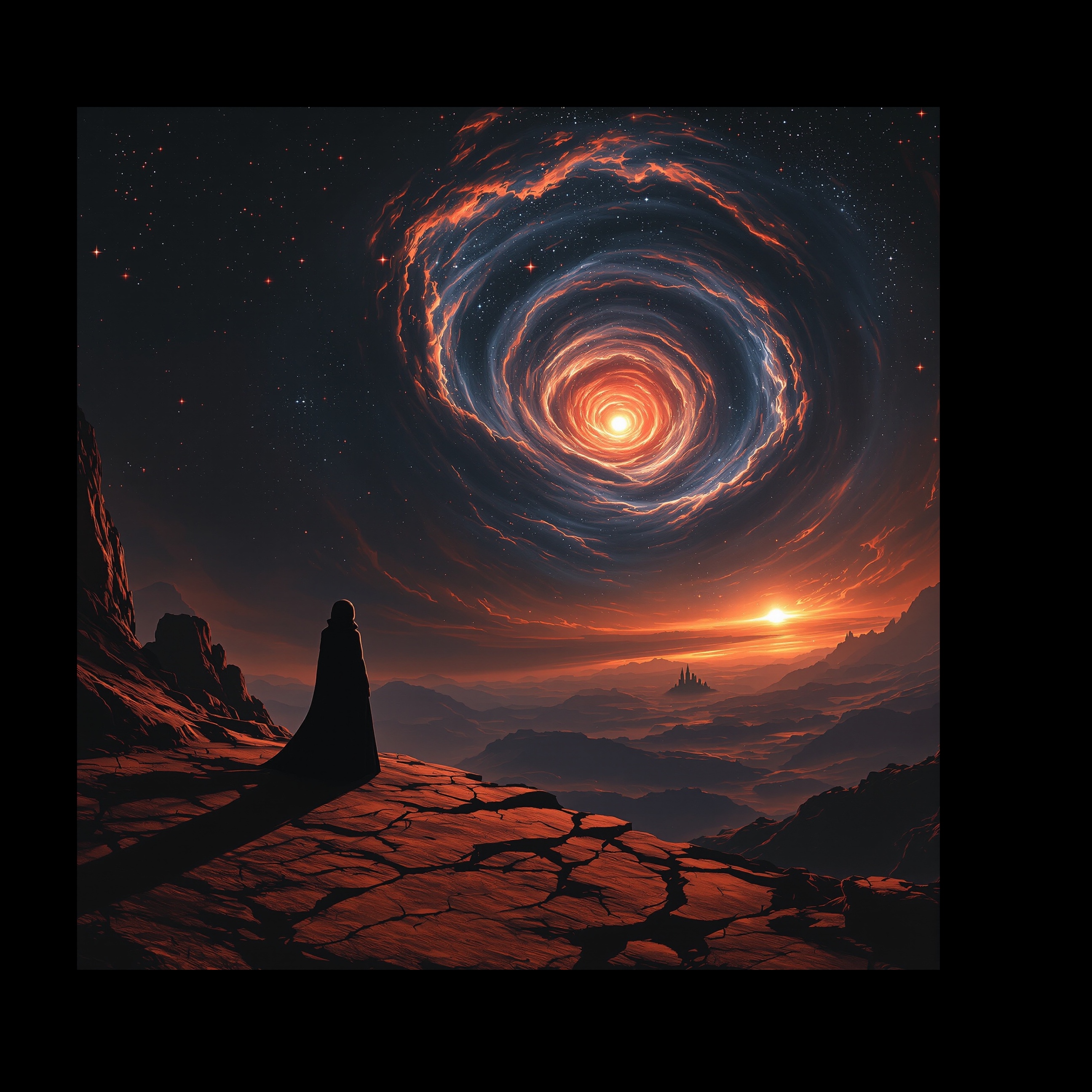 Psychedelic spacerock western early Progressive Rock, Psychedelic Rock, Classic Rock, Art Rock syd barrett vibe, Ethereal, breathy female vocal, very soft and ghostly, floating over a slow, drifting psychedelic space‑western jam, lots of reverb and space, Revelation‑inspired storm in the stars, to midtempo swirling echo guitars slide guitar with heavy reverb fuzzy bass hypnotic drums ambient synths tapedelay and feedback textures haunting male vocal dreamy and slightly distant surreal storytelling about cosmic revelation visions and a lone traveler between dying stars atmospheric improvised experimental less folk more trippy space jam