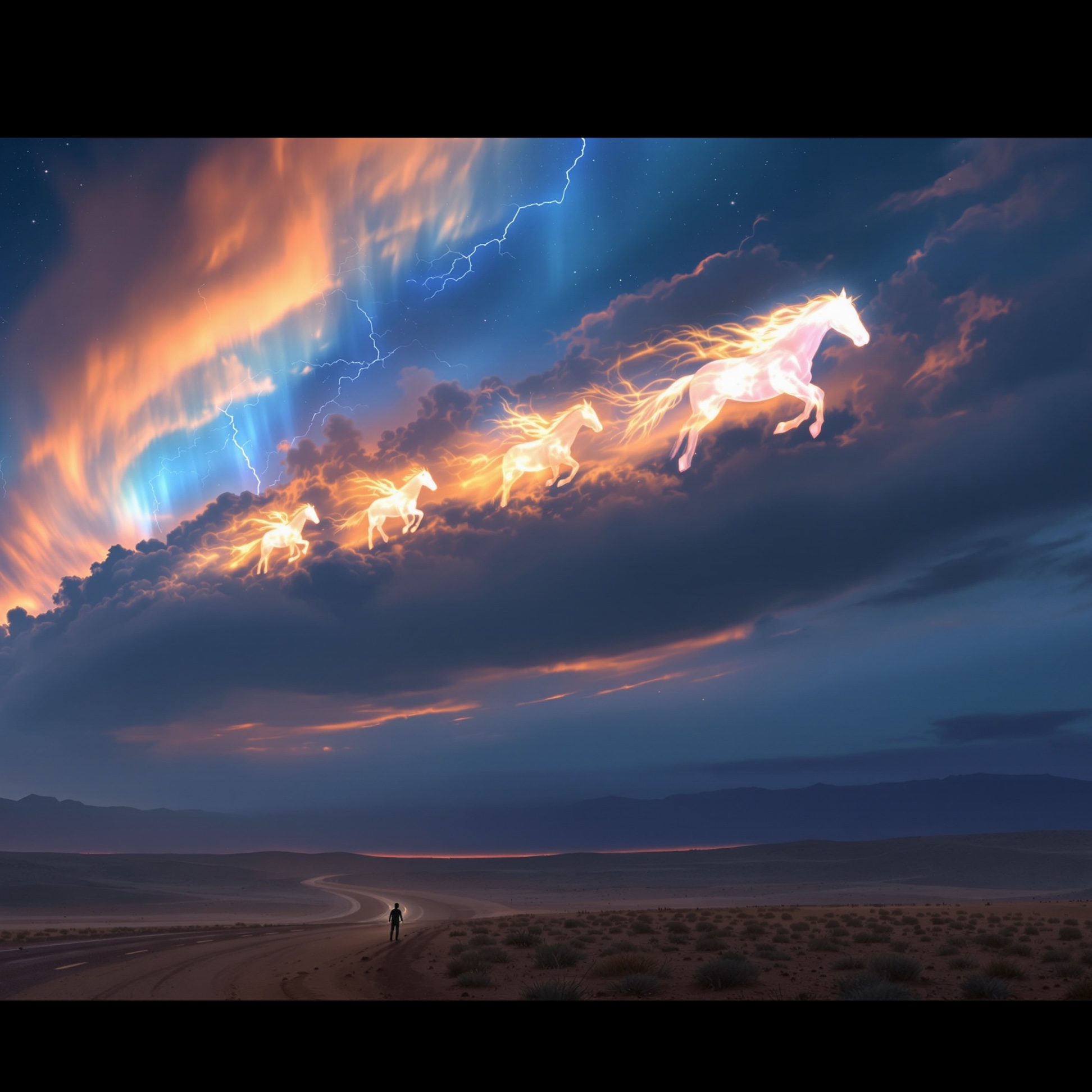 Psychedelic spacerock western early Progressive Rock, Psychedelic Rock, Classic Rock, Art Rock syd barrett vibe, Ethereal, breathy, ghostly, flowing male vocal, very soft and ghostly, floating over a slow, drifting psychedelic space‑western jam, lots of reverb and space, Revelation‑inspired storm in the stars, to midtempo swirling echo guitars slide guitar with heavy reverb fuzzy bass hypnotic drums ambient synths tapedelay and feedback textures haunting male vocal dreamy and slightly distant surreal storytelling about cosmic revelation visions and a lone traveler between dying stars atmospheric improvised experimental less folk more trippy space jam