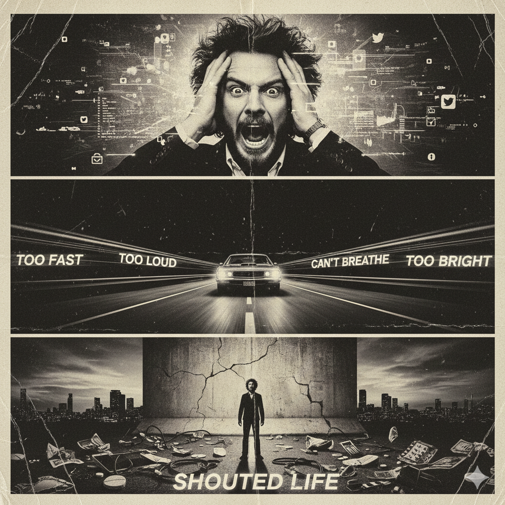 Prompt: High-energy Modern Country Rock, Dark Americana, Outlaw Folk, 170 BPM, Fast aggressive "train-beat" rhythm, Male dramatic tenor vocals, powerful whiskey-soaked rasp, soulful piercing belting, intense operatic vibrato on high notes, breathy storytelling verses, Vocal-forward, raw analog grit, No synths, Instrumentation: Overdriven Telecaster twang, aggressive acoustic guitar strumming, slide guitar wails, heavy percussive upright slap-bass, Fast "Stomp and Holler" drums, explosive snare and cymbals, Structure: Melancholic dusty verses transitioning into explosive anthemic choruses, Manic, rebellious, and theatrical live house energy, 1970s Outlaw studio sound