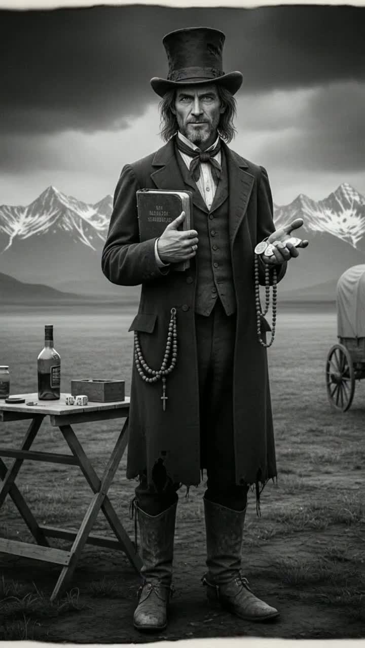 Raw cowpunk energy launches with a boom-chicka acoustic rhythm over fast, relentless drums at 140 BPM, Verses slow to a deep, dark 105 BPM, blending gravelly male vocals and moody slide guitar evoking gothic Americana, Choruses erupt at 145 BPM with distorted electrics, anthemic gang vocals, and full punk attitude, reinforced by Western-rock lead lines and driving bass, keeping a cinematic edge throughout