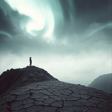 Epic orchestral rock swell with male vocals, starting sparse and hollow with distant piano and low strings, then adding tom-heavy drums, distorted guitars, and choirs, Verses linger in a slow 6/8 dirge; chorus erupts with soaring melody and tight vocal doubles, Massive dynamic climb, from a whisper in a wasteland to a battle cry in a storm