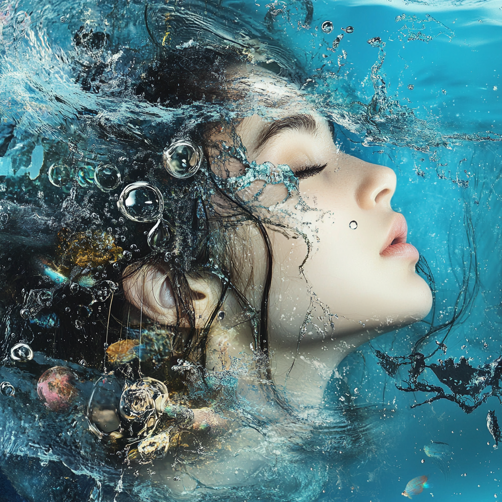 r&b meets j-pop, synth-heavy, dreamy, j-pop, pop, r&b, with soft female vocals and oceanic textures, with water sound textures