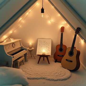 Intimate Wonky Pop, Lullaby, acoustic guitar and toy piano, male and female duet, soft whisper vocals, repetitive melody, cozy winter atmosphere, minimal percussion, dreamy and naive, lo-fi recording