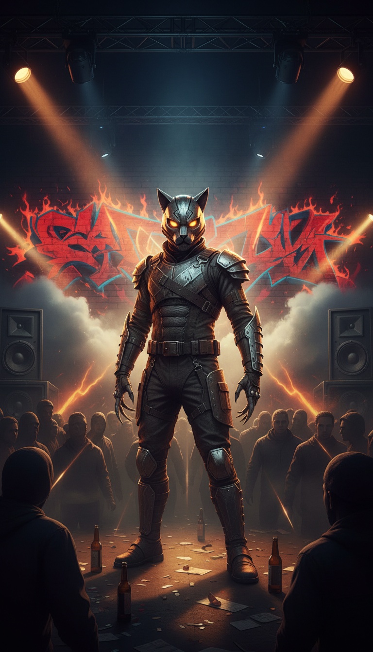 rap, Gritty g-funk trap with industrial edges, deep sub bass and stuttering hi-hat breaks, Mysterious piano loops under stabs, with occasional metallic hits and filtered risers, Verses ride a swaggering mid-tempo pocket, male vocals in a low, raspy register that gets more aggressive each bar, Hook explodes with stacked gang vocals, Keep the mix dark and roomy, with the vocal bone-dry and right in the listener’s face, breaks, male vocals, world, deep, industrial 100bpm